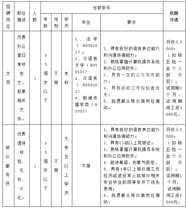 5.熱愛殯葬事業(yè),具有正常履行職責的身體條件、心理素質和符合職位要求的工作能力;