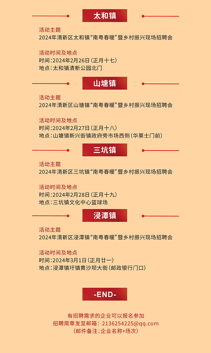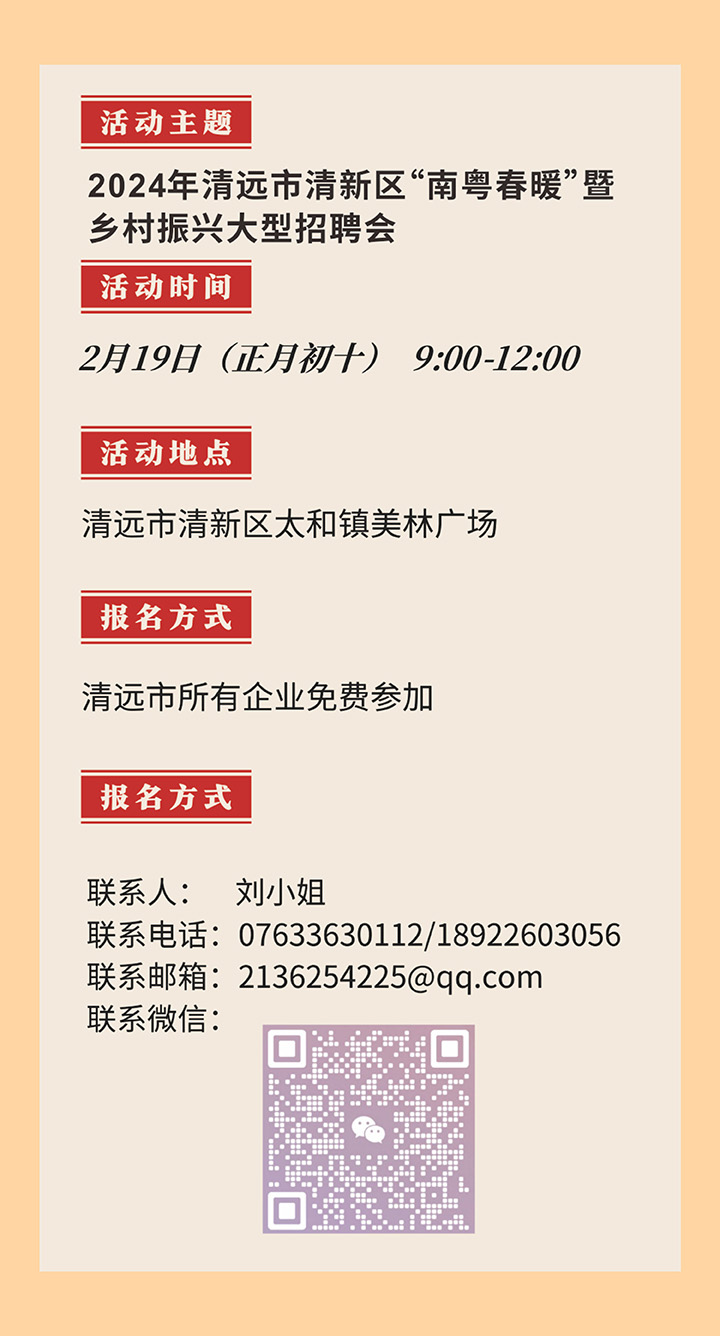 招聘會預(yù)告|2024年清遠市清新區(qū)“南粵春暖”暨鄉(xiāng)村振興大型招聘會