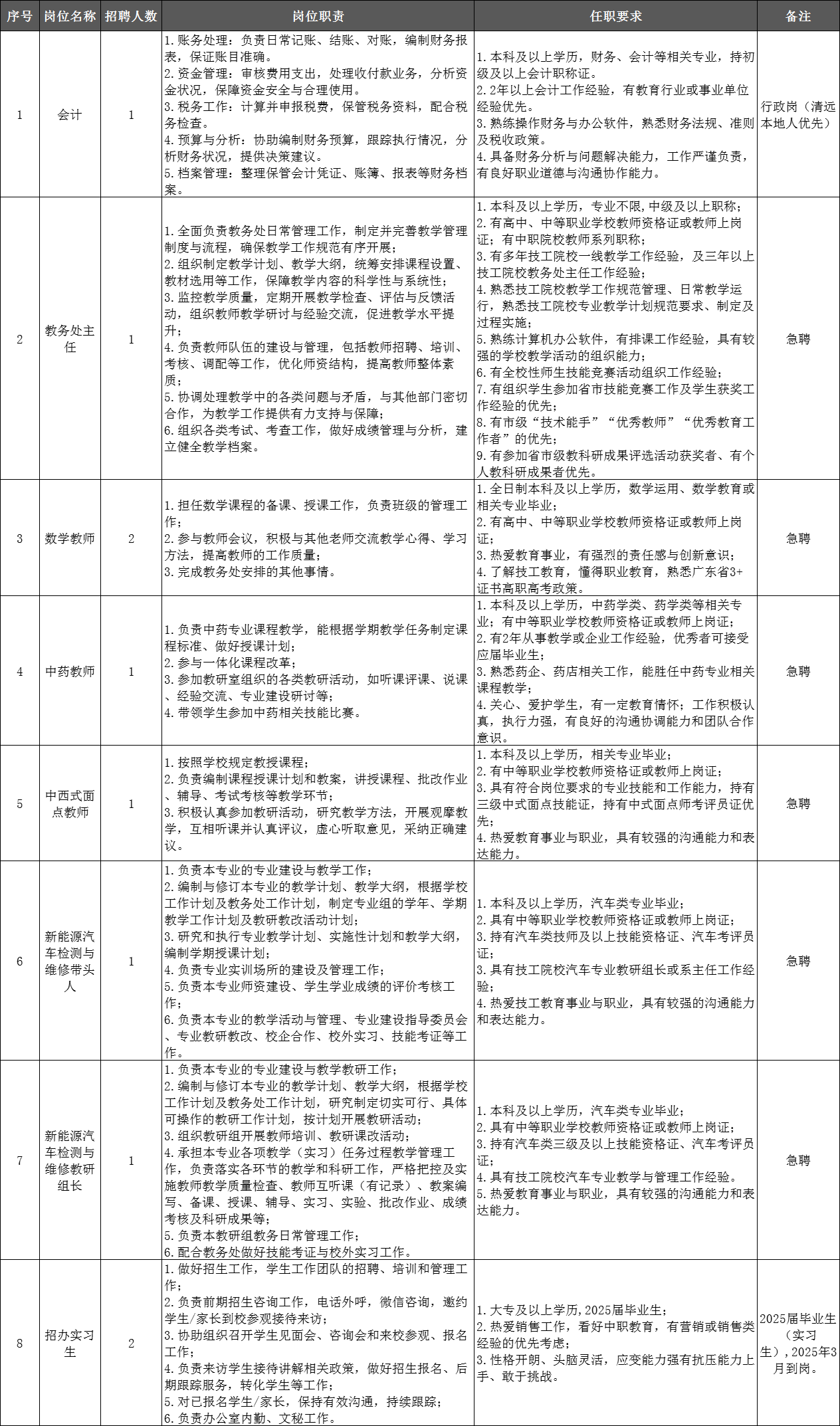 清遠市南方技工學校2025年上半年教職工招聘公告