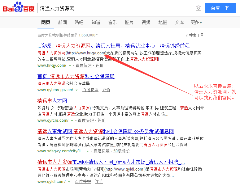 恭喜“清遠人力資源網”www.jihengzn.com榮登百度搜索清遠地 區(qū)首位。清遠人力資源網是由清遠市人力資源市場指導、清遠市錦繡 前程人力資源有限公司運營的官方求職招聘平臺。從3月份正式推 廣到現在,本網站已經吸引了眾多企業(yè)與求職者注冊。